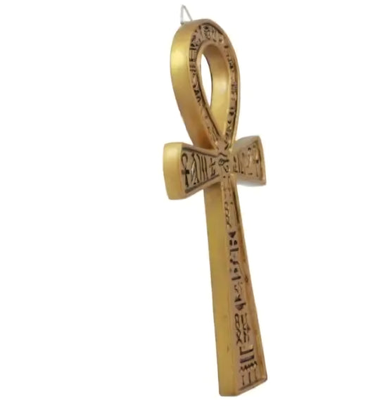 Croix de Ankh égyptienne dorée en résine – Décoration murale 18 x 9,5 cm – Protection ésotérique maison