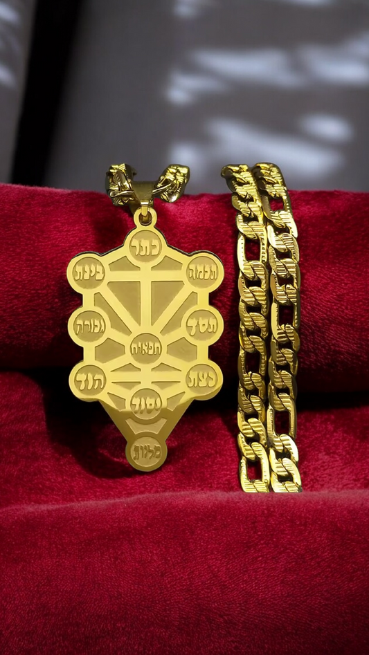 Collier Séphiroth Kabbale arbre de vie hébreu Bijou ésotérique symbolique – Arbre de Vie Hébreu pour Homme (Acier Inoxydable Doré)