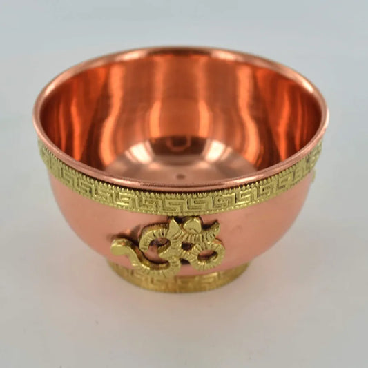Bol à offrandes cuivre + laiton Om (ॐ),porte encens sauge palo santo