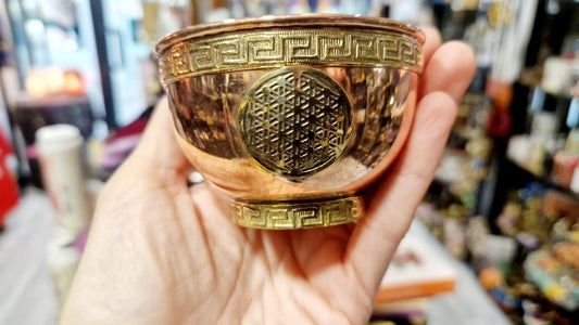 Bol à offrandes cuivre + laiton fleur de vie porte sauge palo santo