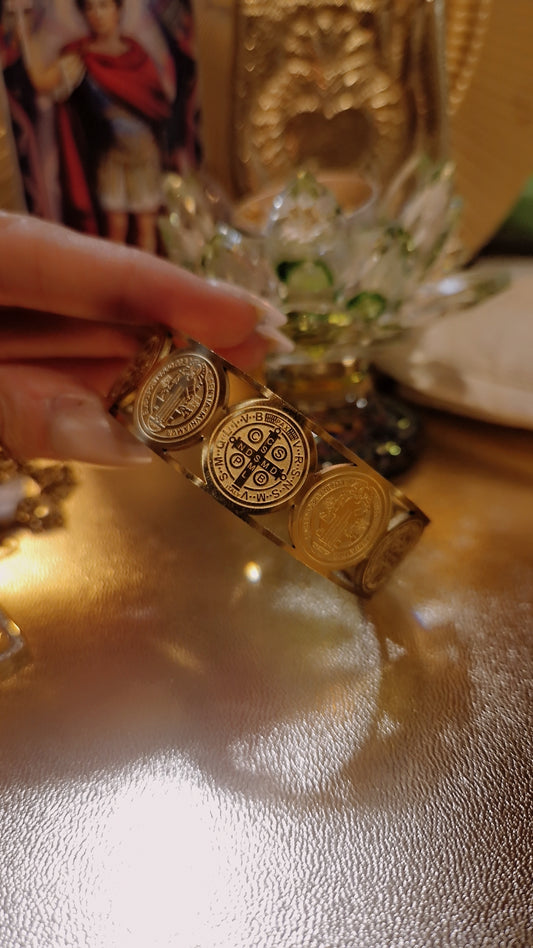 Bracelet Talisman Saint Benoit catholique acier inoxydable bijou rituel protection