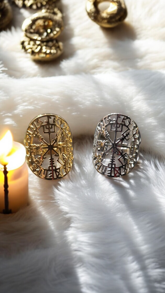 Bague réglable talisman Vegvisir boussole Viking nordique - acier inoxydable or ou argent