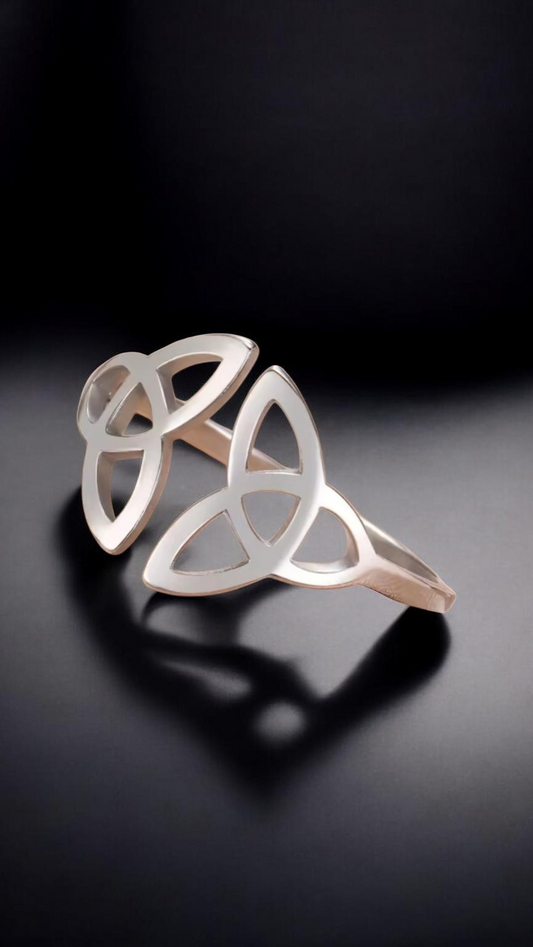 Bague Triquetra Celtique – Acier Inoxydable Doré ou Argenté – Bague Réglable