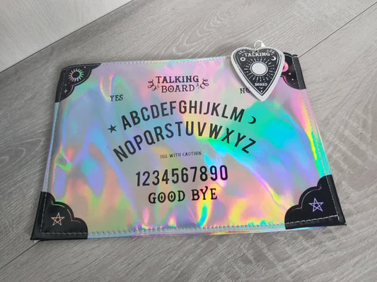 Grande pochette/ trousse à maquillage (ou tarots ou oracles ou pierres…)holographique imprimés « ouija »