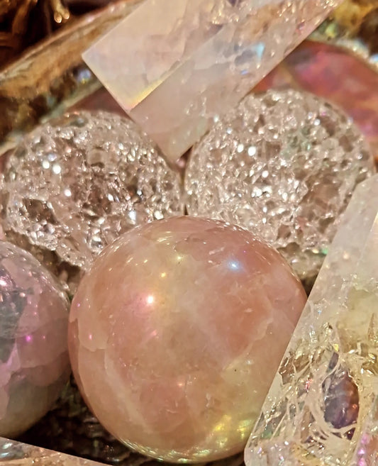 Coffret runes en quartz rose dans sac en tissu 10 x 11 cm