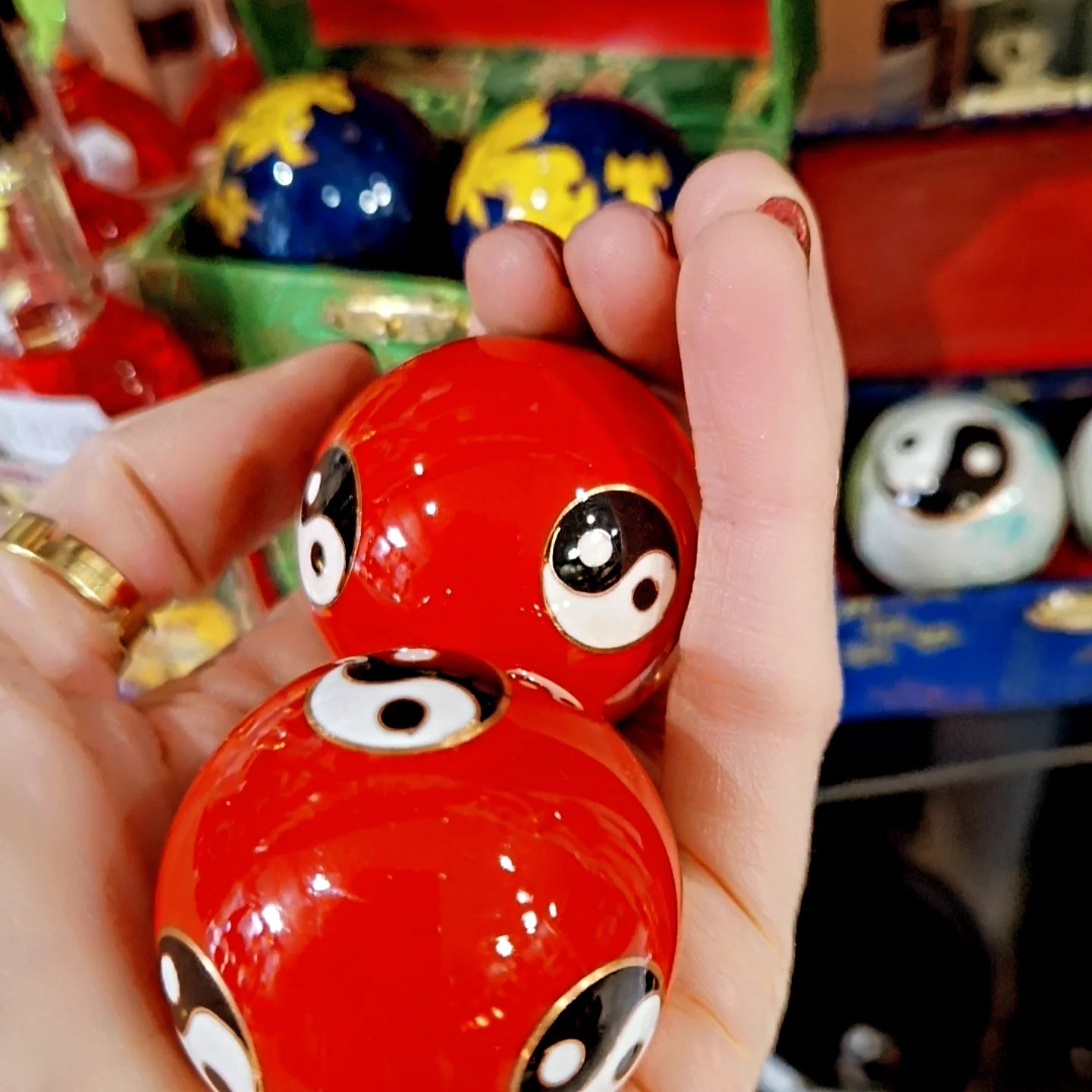 Boules de santé Qi Gong Yin et Yang rouge