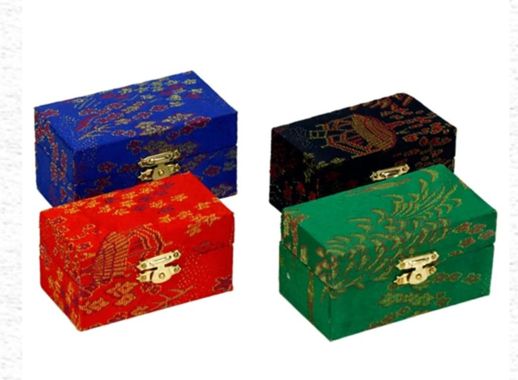 Il existe un mécanisme sonore à l'intérieur des boules de santé libérant une sonorité ronde et lumineuse. Chaque boule de santé a un diamètre d'environ 4 cm. Elles viennent dans une série de deux, dans une boîte de brocart rembourré de belle broderie de soie chinoise.
